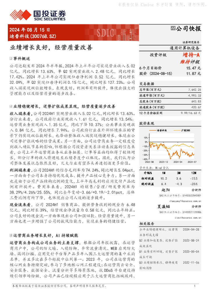 国投证券:迪普科技(300768)-业绩增长良好,经营质量改善.pdf