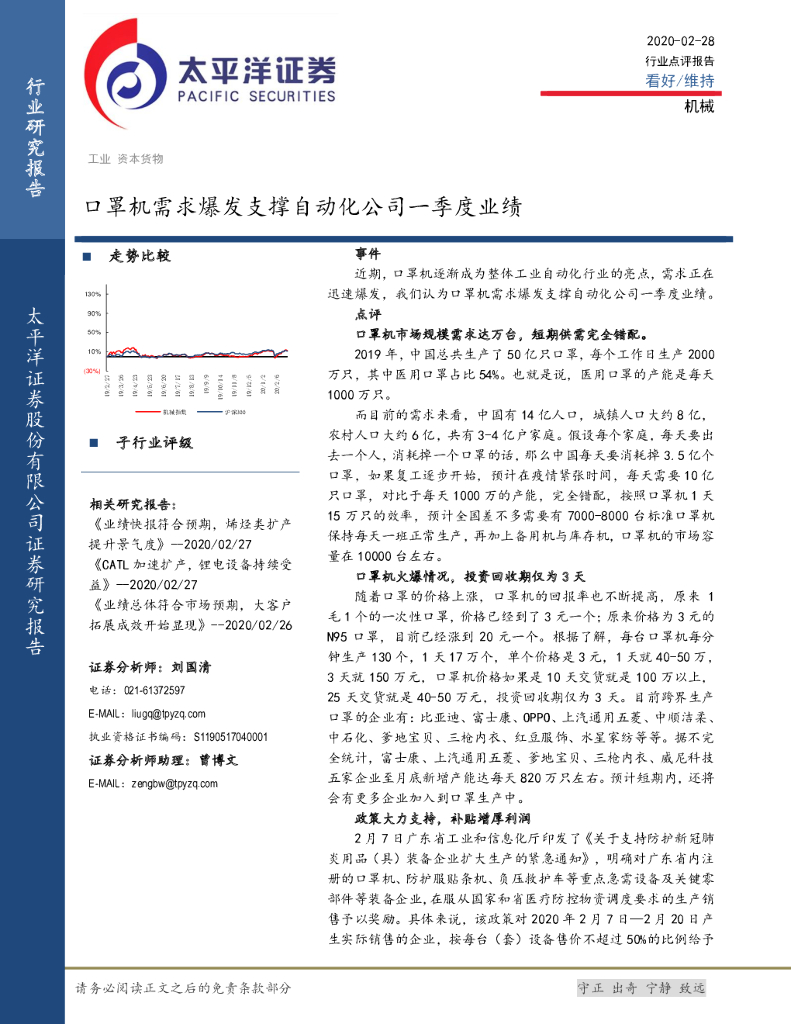 太平洋证券:机械:口罩机需求爆发支撑自动化公司一季度业绩.pdf