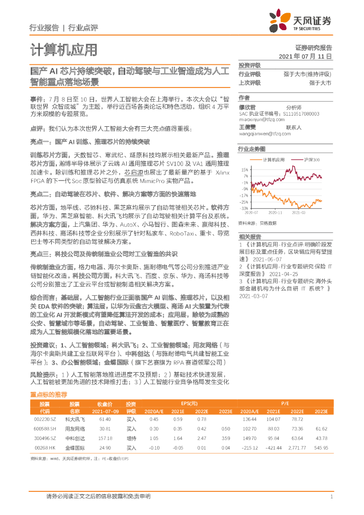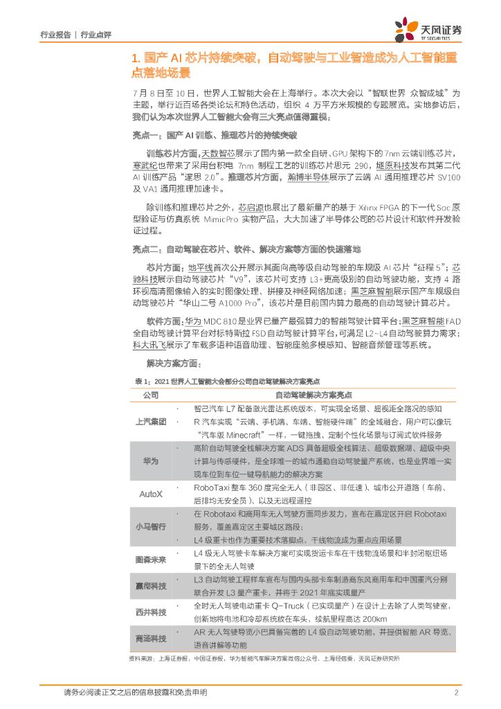 天风证券:计算机应用:国产AI芯片持续突破,自动驾驶与工业智造成为人工智能重点落地场景.pdf