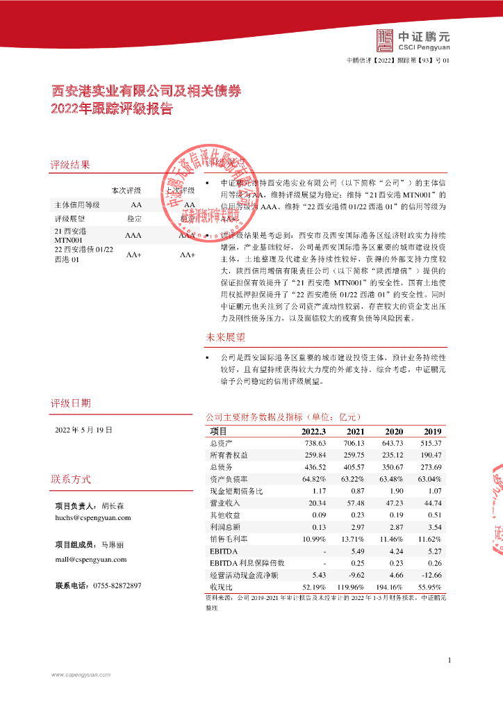 鹏元:西安港实业有限公司及相关债券2022年跟踪评级报告.pdf