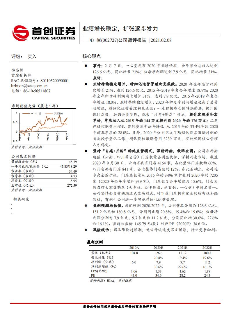 首创证券:一心堂(002727)-公司简评报告:业绩增长稳定,扩张逐步发力.pdf