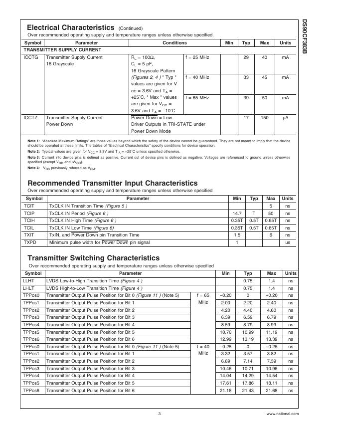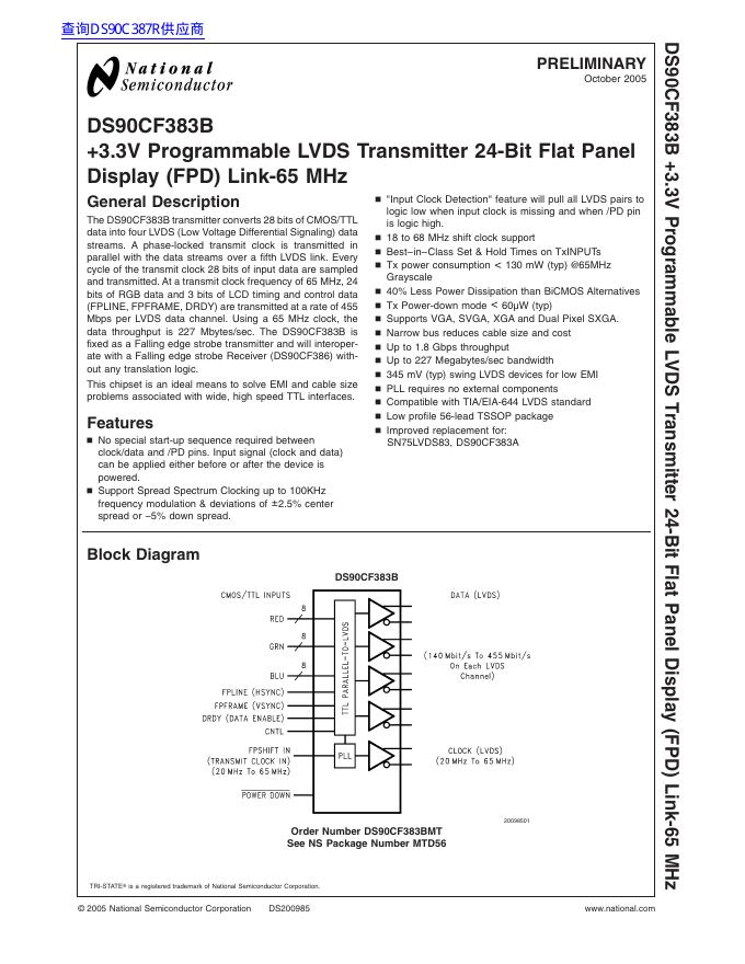 National semiconductor DS90CF383B +3.3V Programmable LVDS Transmitter 24-Bit Flat Panel Display (FPD) Link-65 MHz 数据手册.pdf