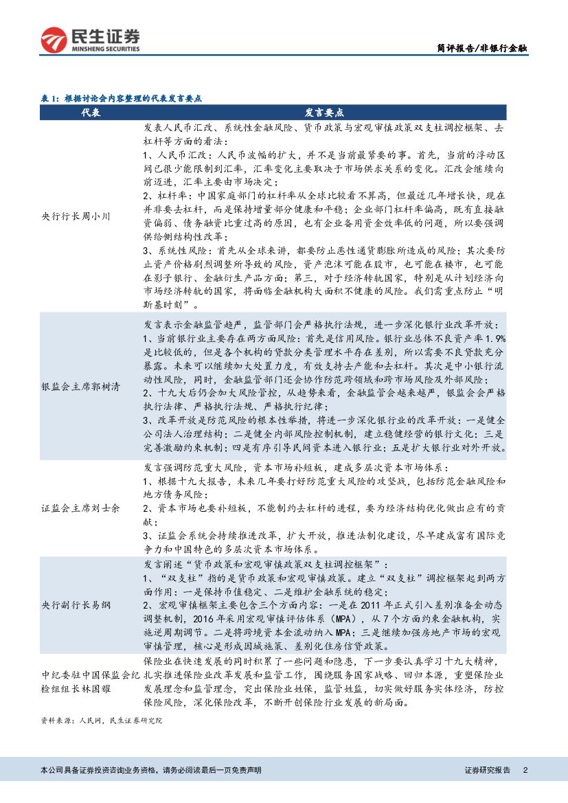 民生证券:非银行金融:十九大中央金融系统代表团讨论会整理-聚焦金融风险,监管持续趋严.pdf