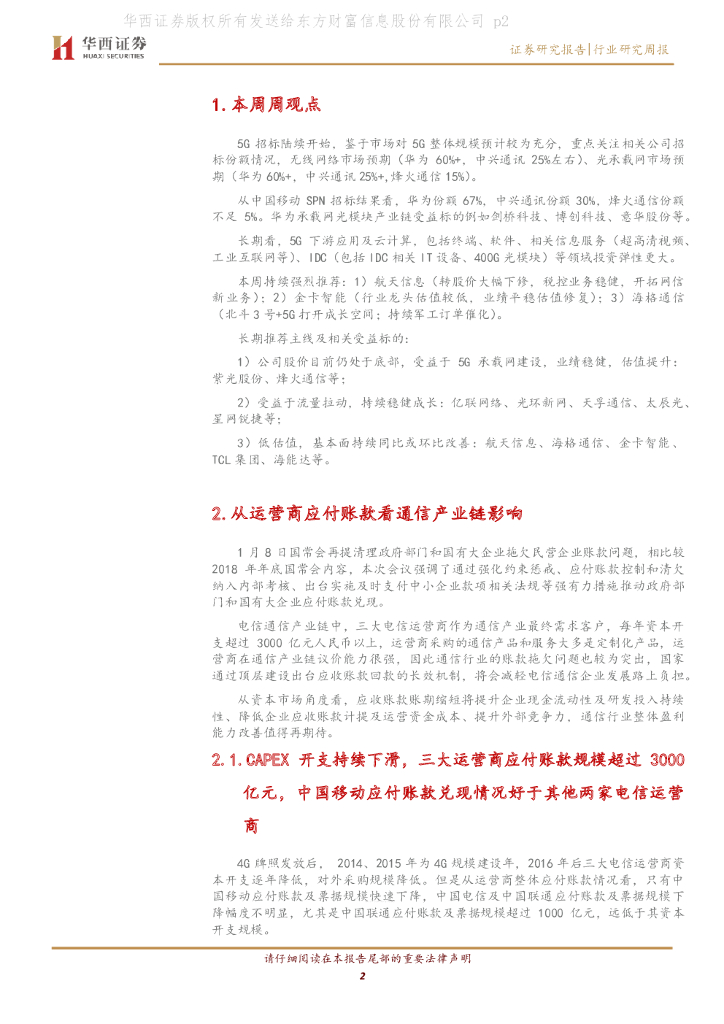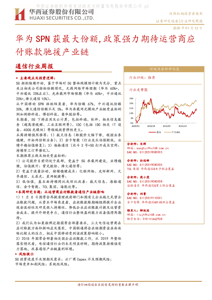 华西证券:通信行业周报:华为SPN获最大份额,政策强力期待运营商应付账款驰援产业链.pdf