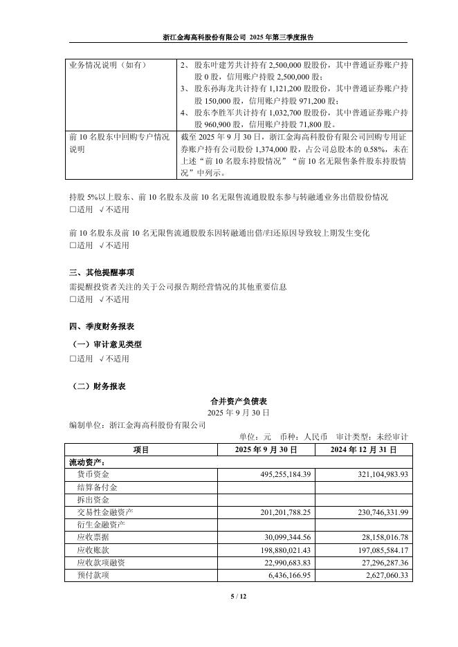 603311-金海高科:金海高科2025年第三季度报告.pdf