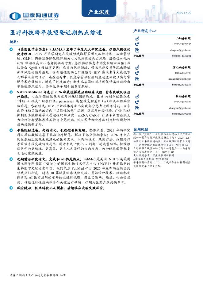 国泰海通证券:医疗科技跨年展望暨近期热点综述.pdf
