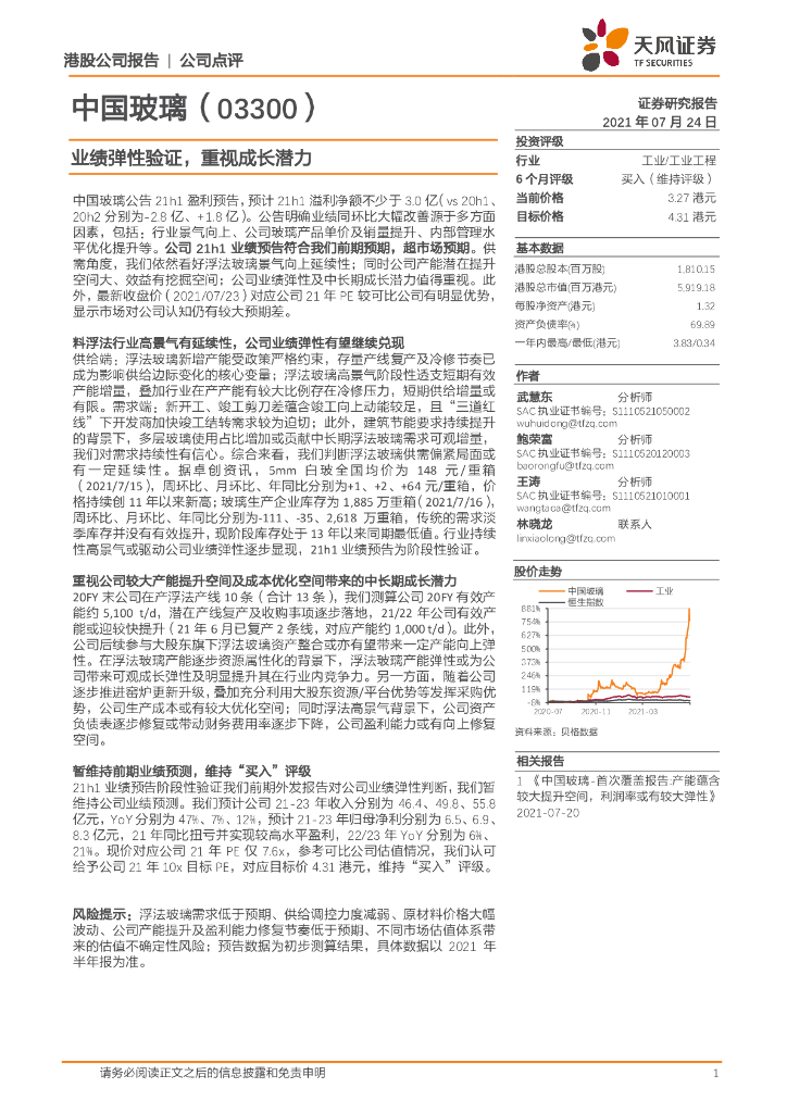 天风证券:中国玻璃(03300)港股公司研究报告-业绩弹性验证,重视成长潜力.pdf