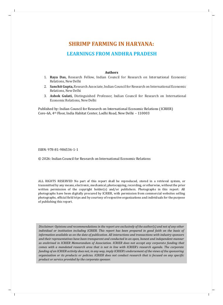 印度国际经济关系研究理事会(ICRIER):2026年哈里亚纳邦的虾养殖:来自安得拉邦的经验教训报告(英文版).pdf