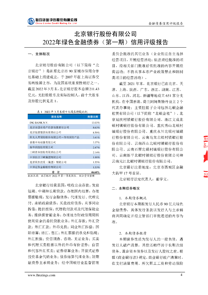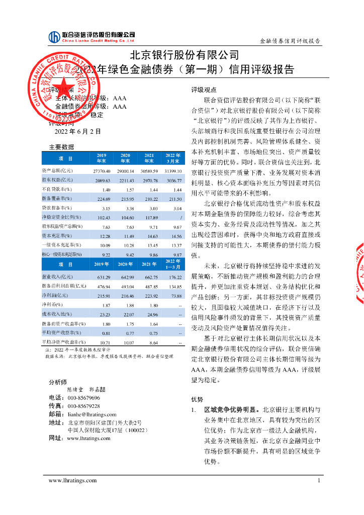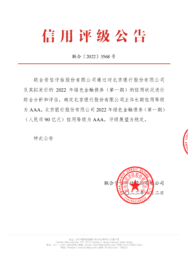 联合资信:北京银行股份有限公司2022年绿色金融债券(第一期)信用评级报告.pdf