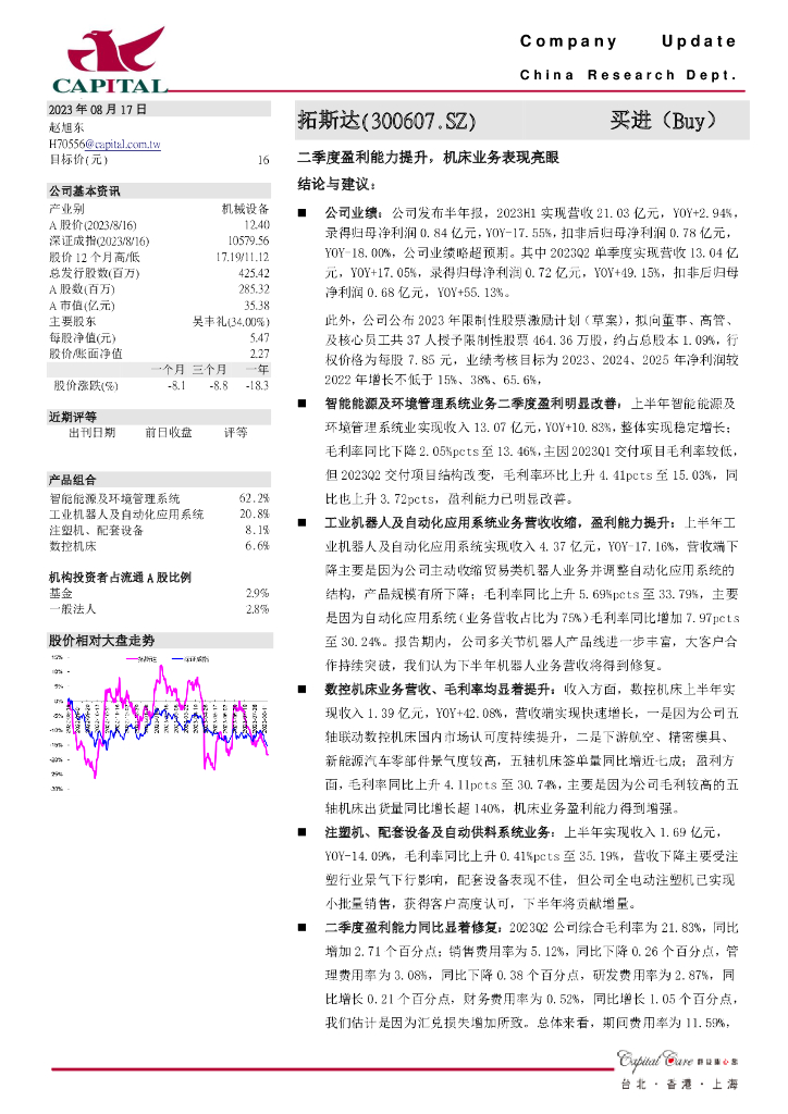 群益证券:拓斯达(300607)-二季度盈利能力提升,机床业务表现亮眼.pdf