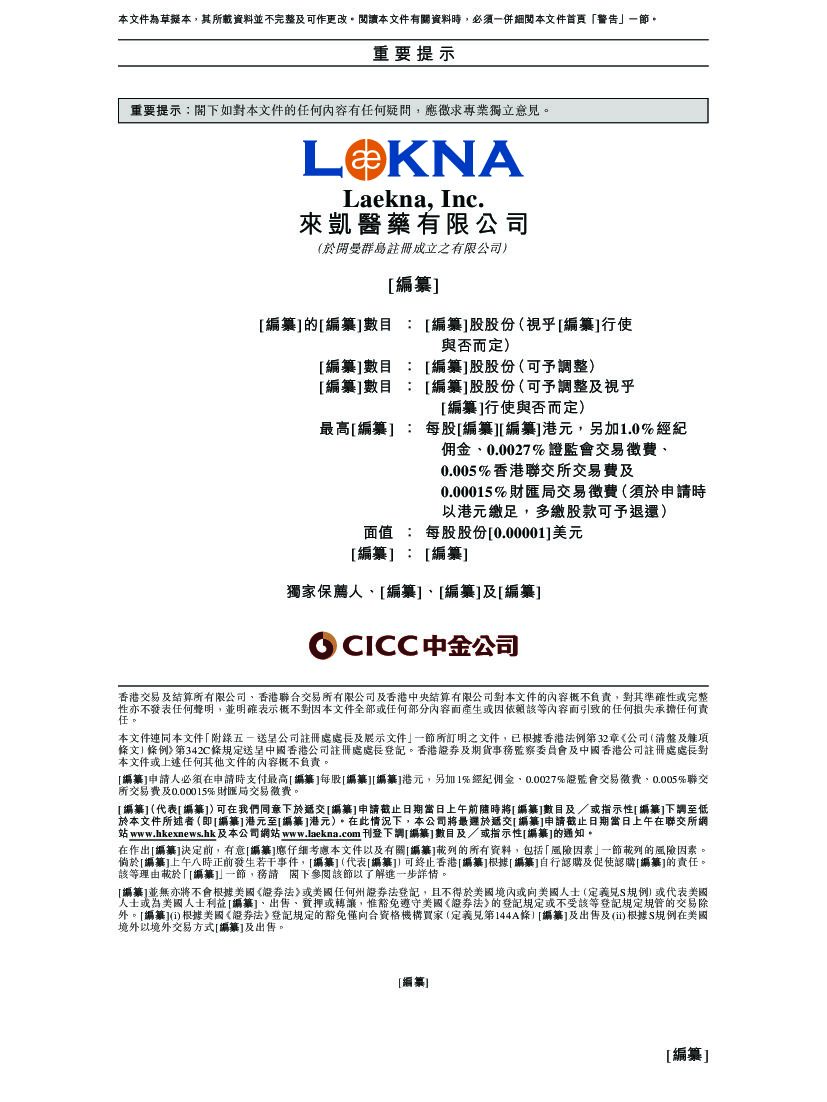 Laekna来凯医药港交所IPO上市招股说明书:从诺华进4种药物,已融资超1.62亿美元.pdf