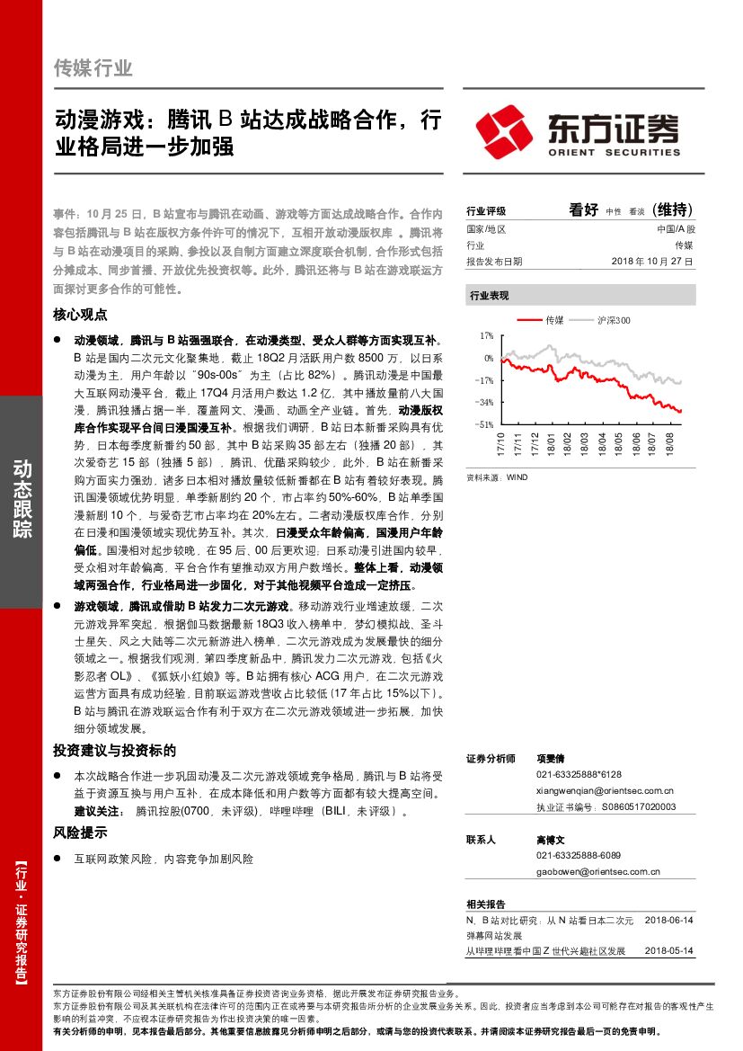 东方证券:传媒行业动态跟踪:动漫游戏-腾讯B站达成战略合作,行业格局进一步加强.pdf