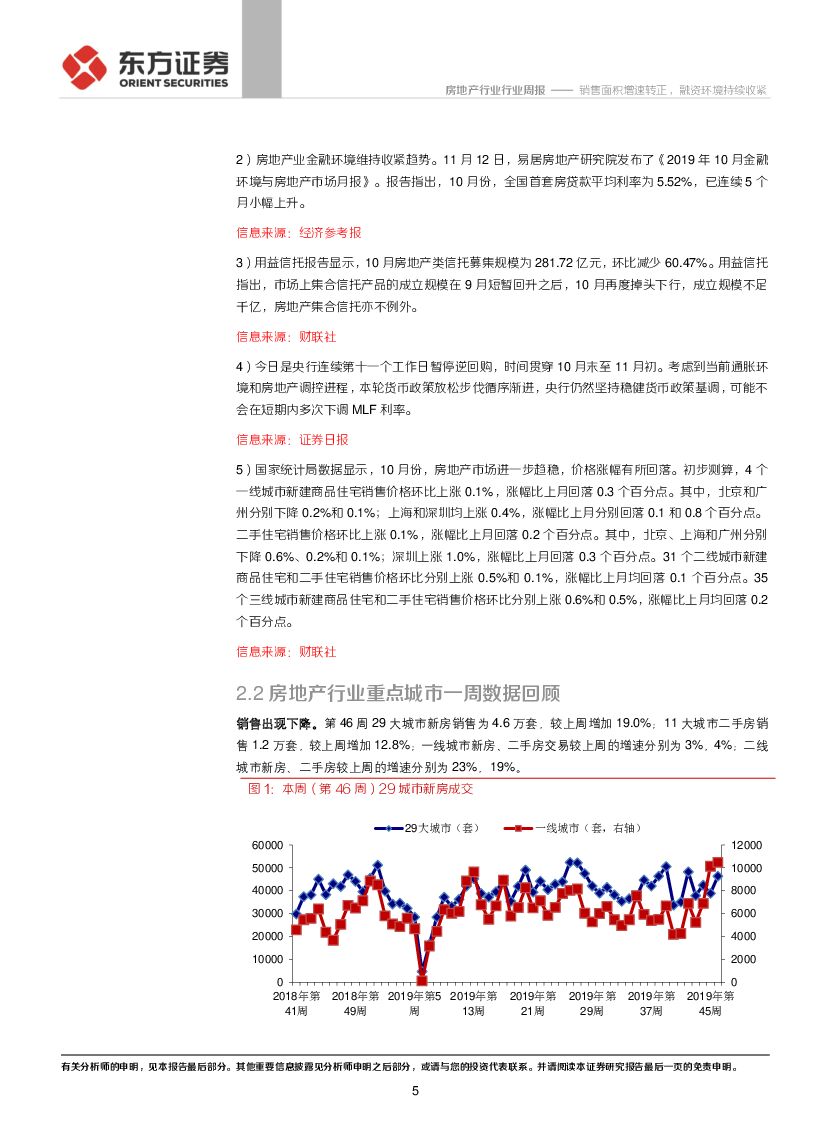 东方证券:房地产行业:2019年第46周地产周报:销售面积增速转正,融资环境持续收紧.pdf