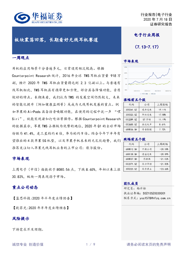 华福证券:电子行业周报:板块震荡回落,长期看好无线耳机赛道.pdf