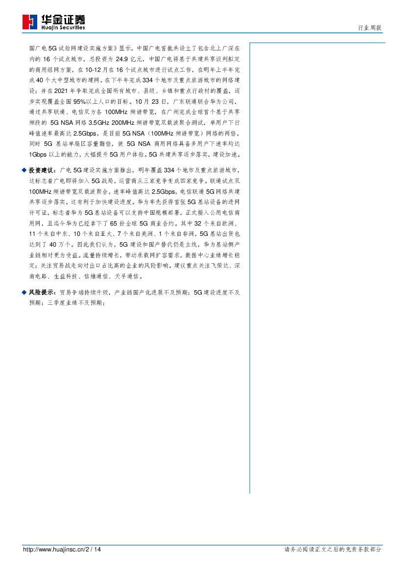 华金证券:通信行业周报:前三季度通信业运行情况公布,关注5G全面提速机遇.pdf