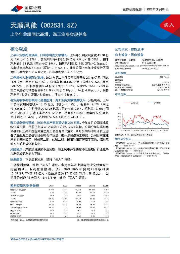 国信证券:天顺风能(002531)-上半年业绩同比高增,海工业务实现并表.pdf