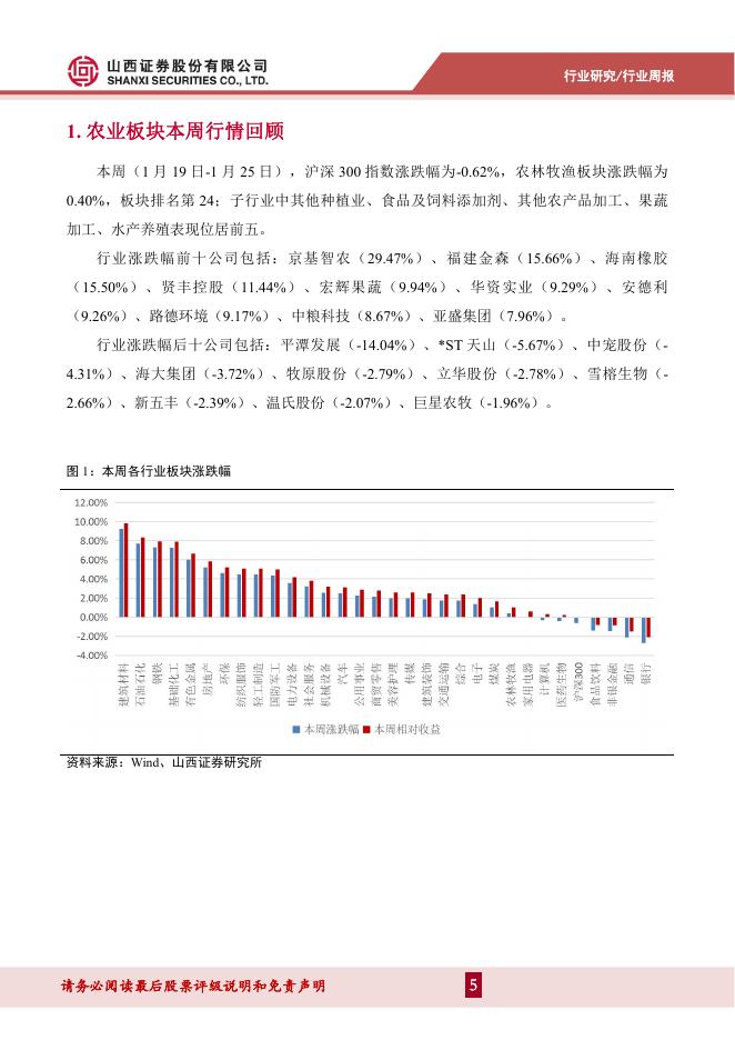 山西证券:农业行业周报:猪价近期旺季活跃,旺季后或仍承压.pdf
