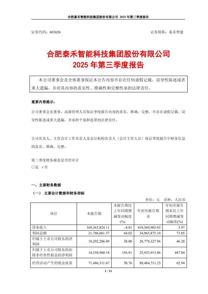 603656-泰禾智能:泰禾智能2025年第三季度报告.pdf
