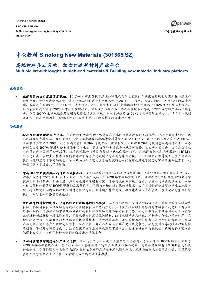 环球富盛理财:中仑新材(301565)-高端材料多点突破,致力打造新材料产业平台.pdf