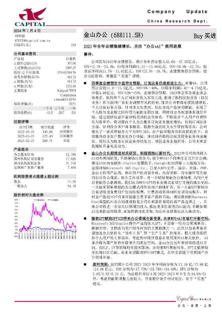 群益证券:金山办公(688111)-2023年全年业绩稳健增长,关注“办公+AI”商用进展.pdf