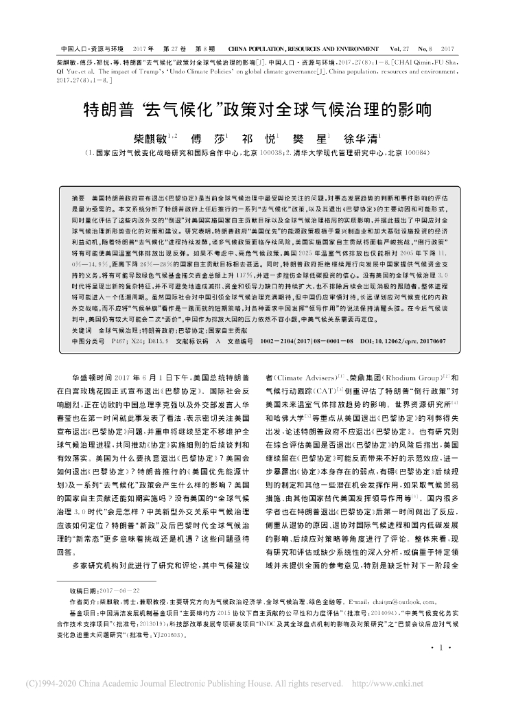 柴麒敏:特朗普“去气候化”政策对全球气候治.pdf