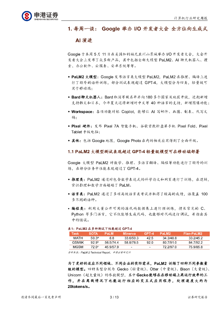 申港证券:计算机每周一谈:Google举办2023开发者大会 全方位向生成式AI演进.pdf