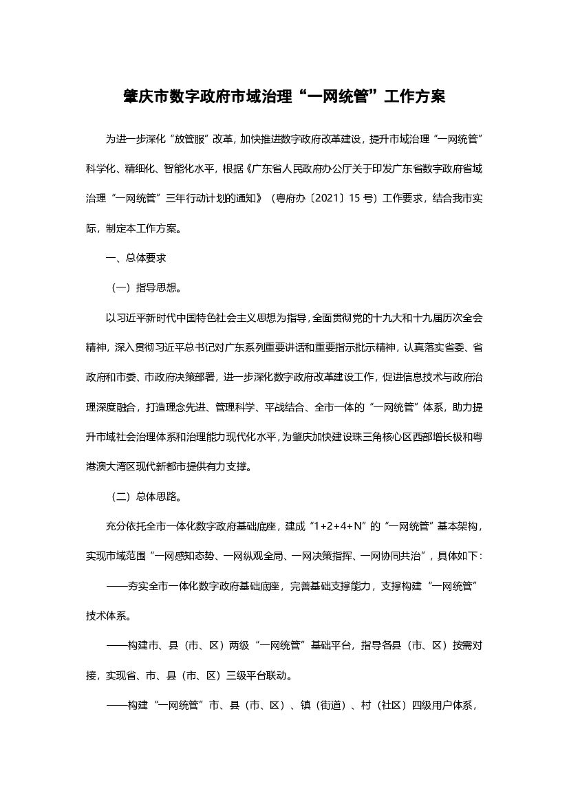 肇庆市数字政府市域治理“一网统管”工作方案.doc