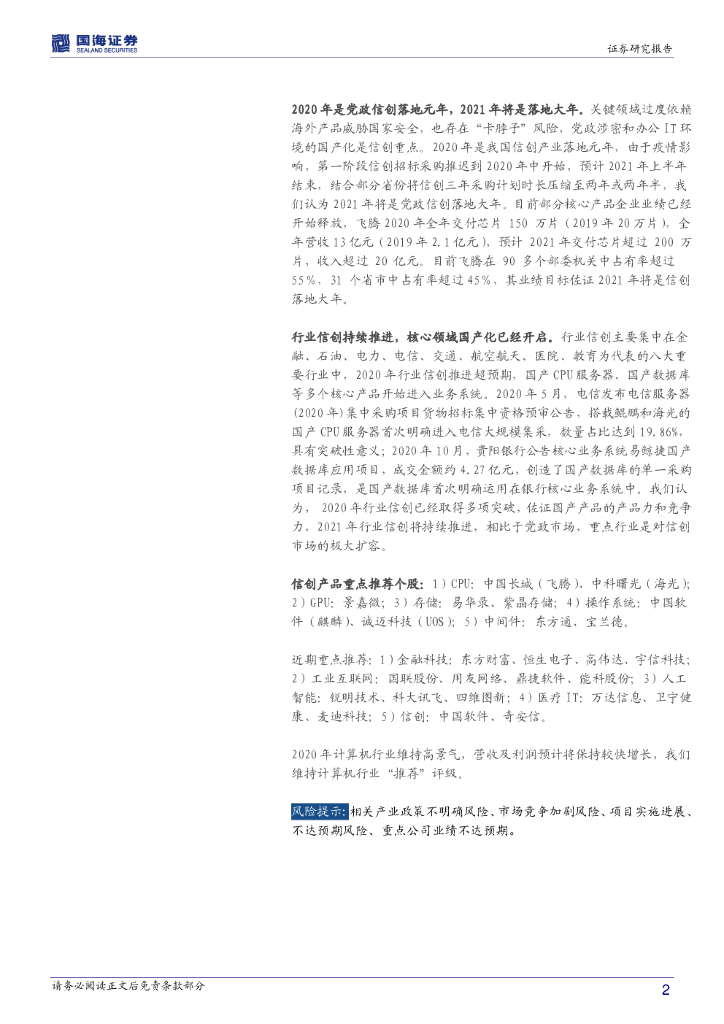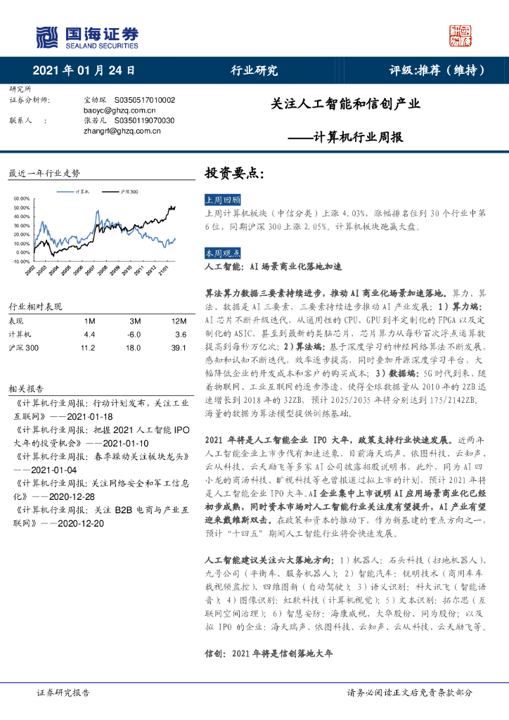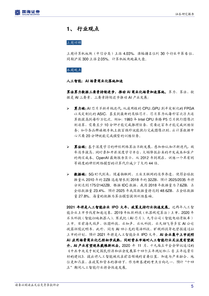 国海证券:计算机行业周报:关注人工智能和信创产业.pdf