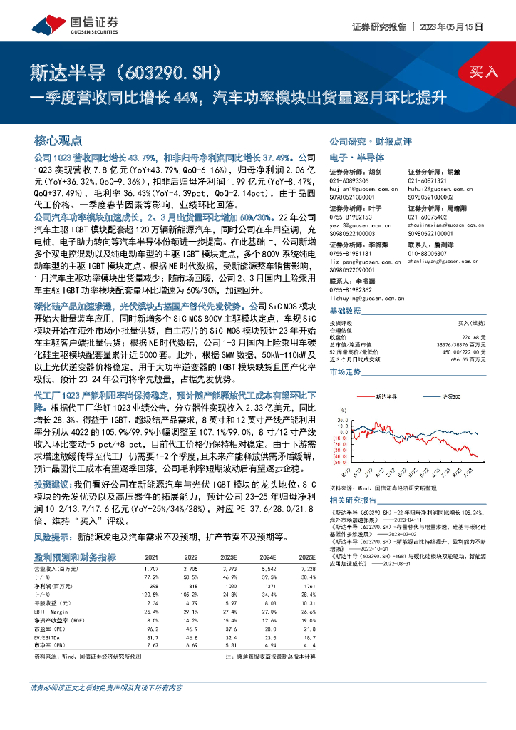 国信证券:斯达半导(603290)-一季度营收同比增长44%,汽车功率模块出货量逐月环比提升.pdf
