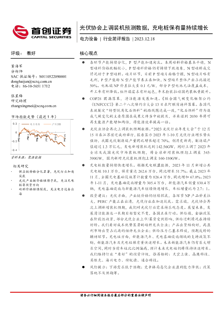 首创证券:电力设备行业简评报告:光伏协会上调装机预测数据,充电桩保有量持续增长.pdf