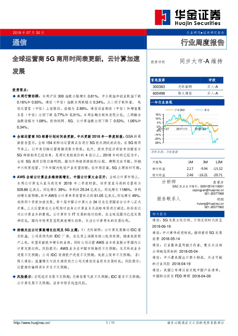 华金证券:通信行业周度报告:全球运营商5G商用时间表更新,云计算加速发展.pdf