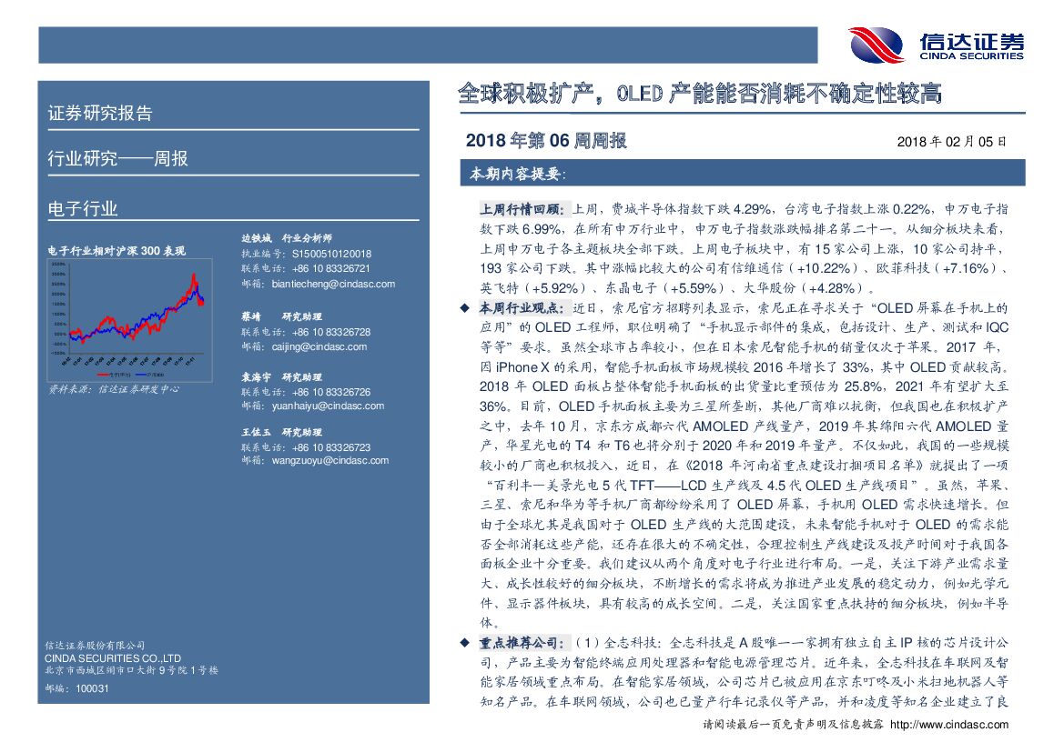 信达证券:电子行业2018年第06周周报:全球积极扩产,OLED产能能否消耗不确定性较高.pdf