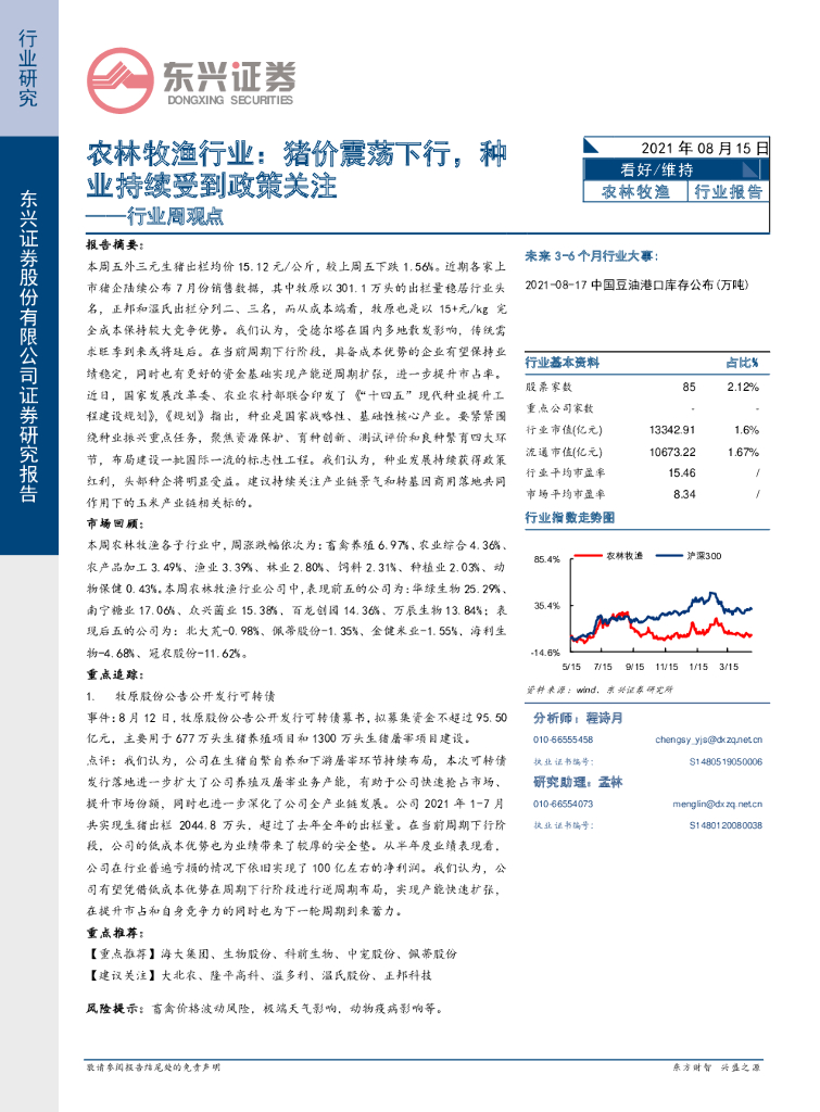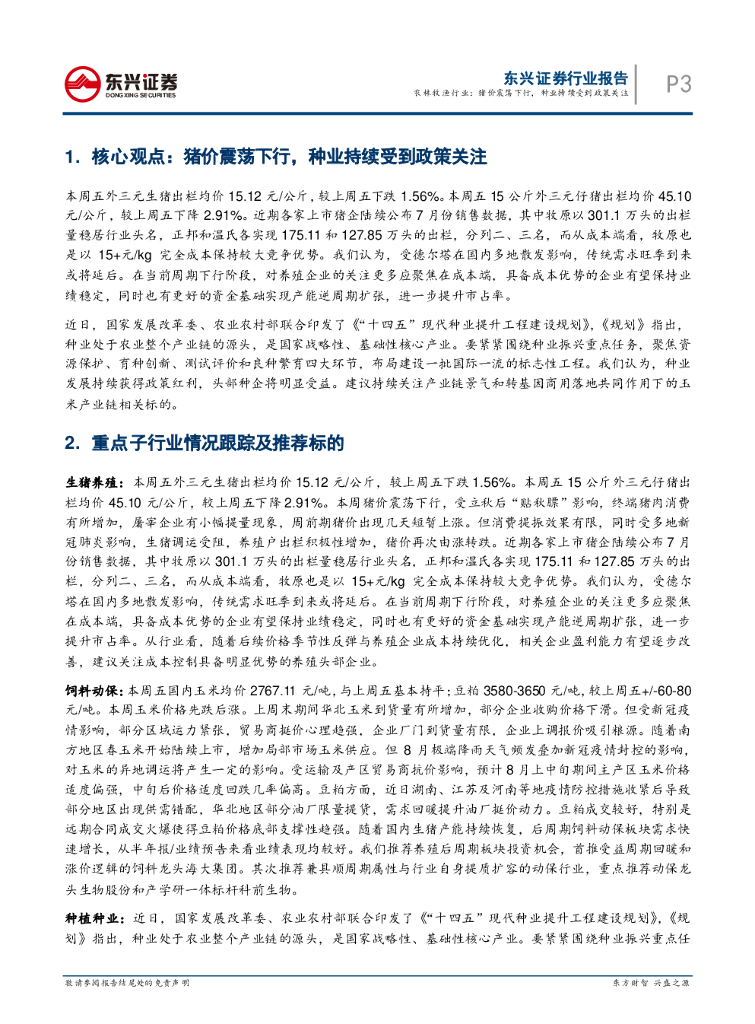 东兴证券:农林牧渔行业周观点:猪价震荡下行,种业持续受到政策关注.pdf