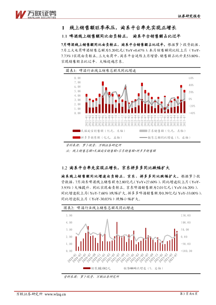 万联证券:啤酒行业7月电商数据跟踪:7月啤酒线上销售额旺季承压,同比由负转正.pdf