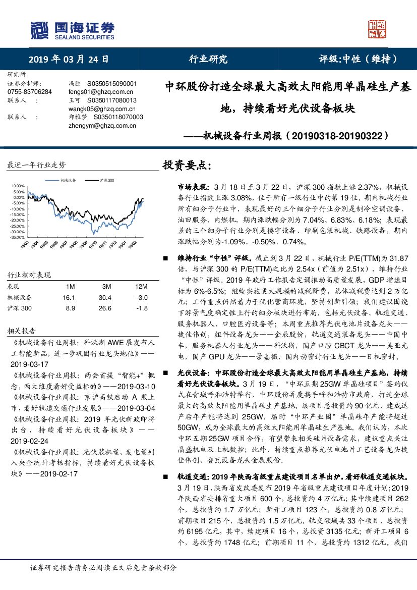 国海证券:机械设备行业周报:中环股份打造全球最大高效太阳能用单晶硅生产基地,持续看好光伏设备板块.pdf