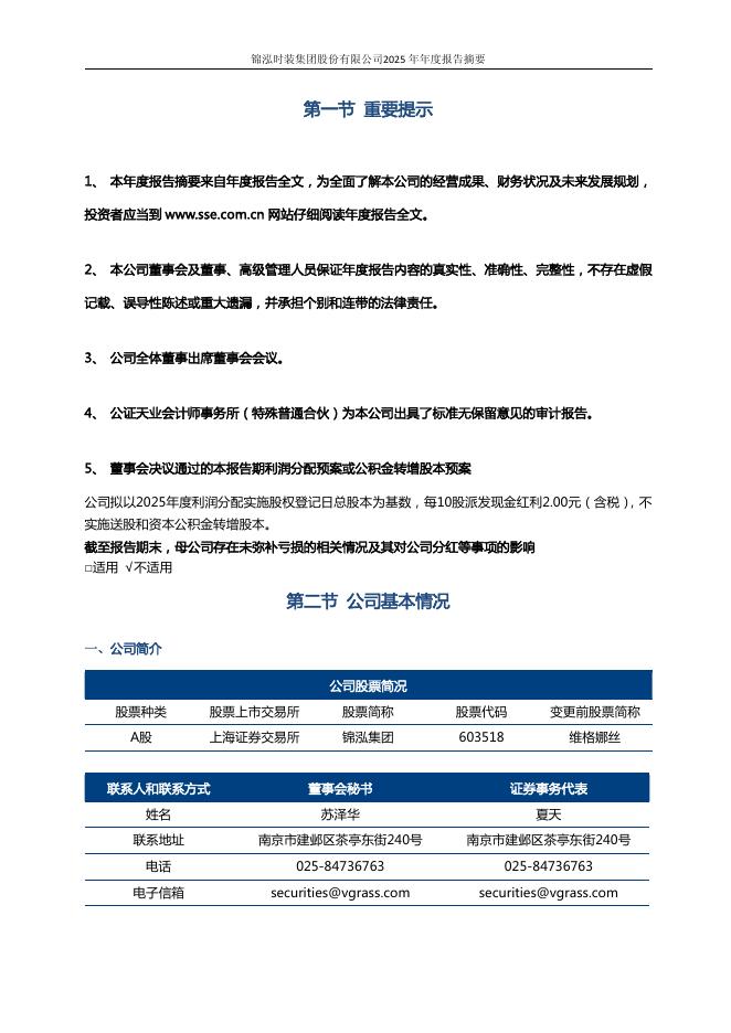 603518-锦泓集团:锦泓时装集团股份有限公司2025年年度报告摘要.pdf