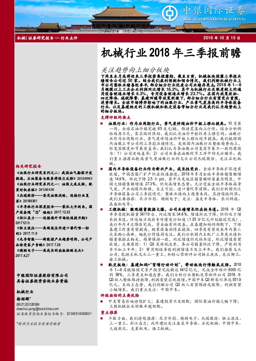 中银国际:机械行业2018年三季报前瞻:关注趋势向上细分板块.pdf