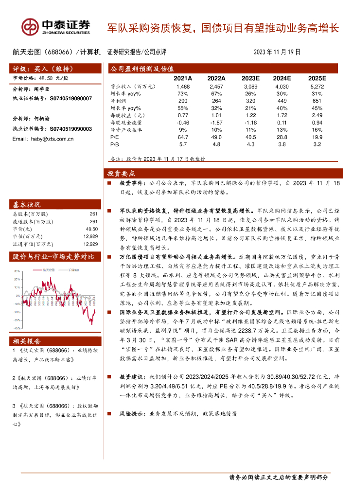 中泰证券:航天宏图(688066)-军队采购资质恢复,国债项目有望推动业务高增长.pdf