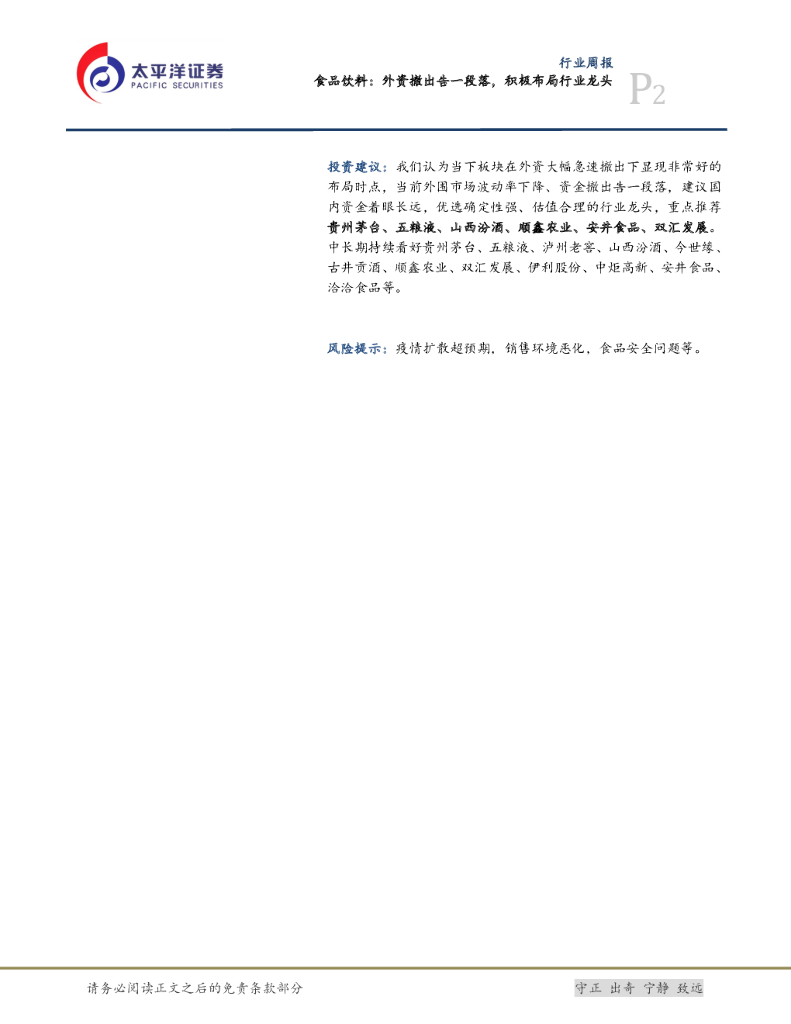 太平洋证券:食品饮料:外资撤出告一段落,积极布局行业龙头.pdf