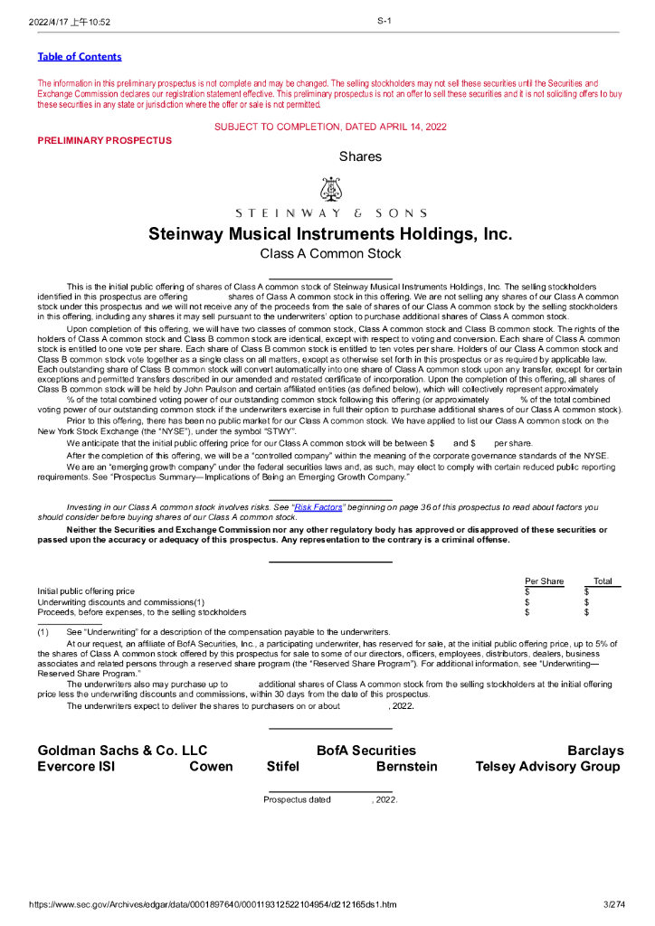 施坦威乐器STWY美股IPO上市照顾说明书.pdf