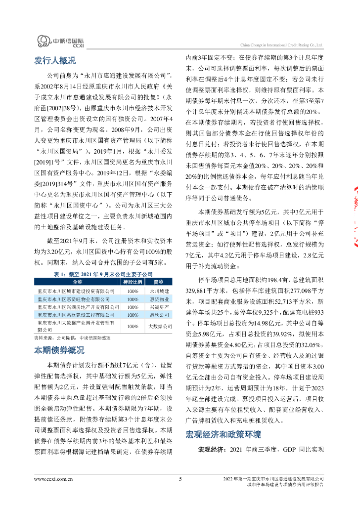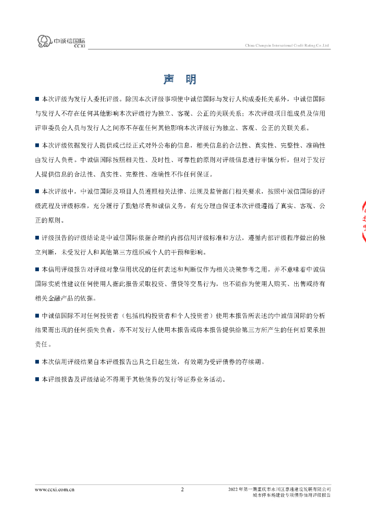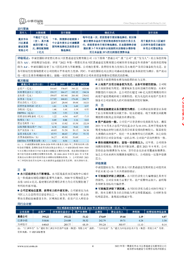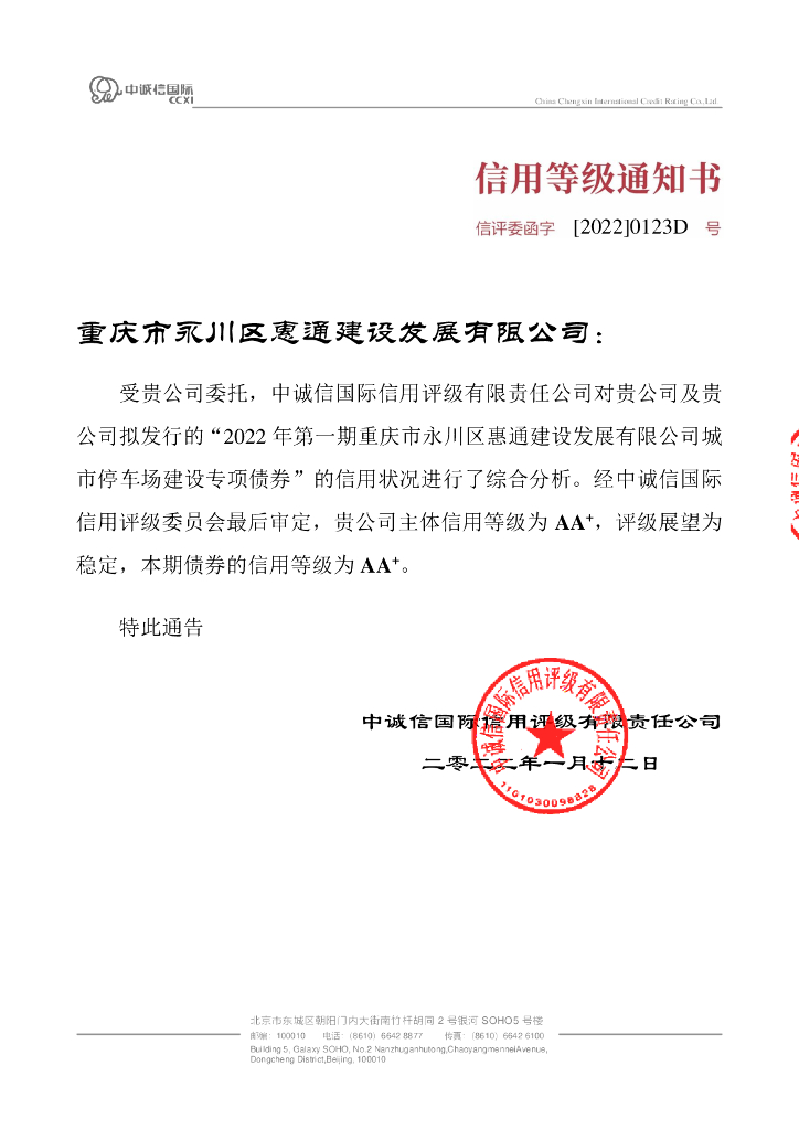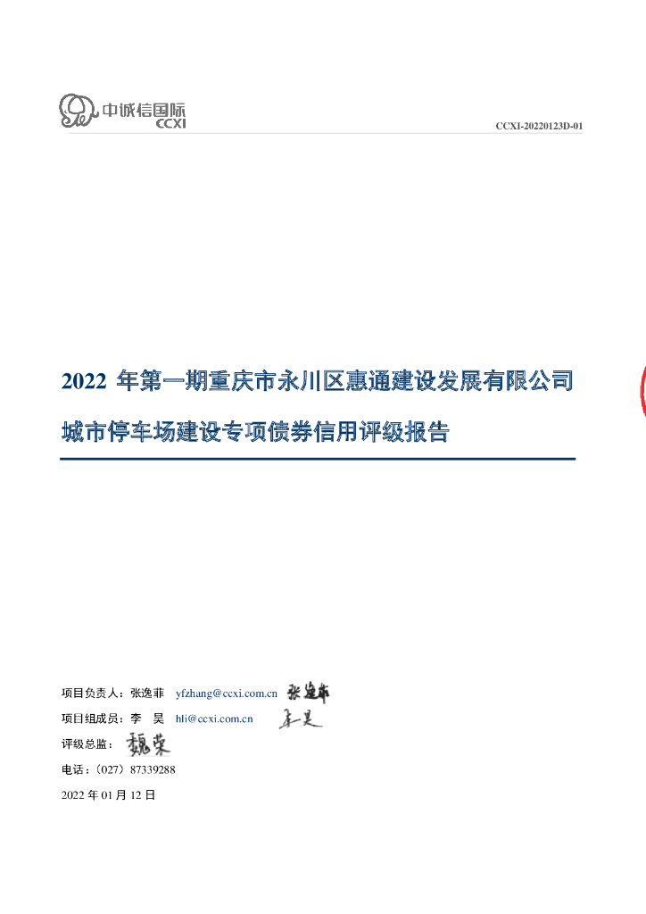 中诚信:2022年第一期重庆市永川区惠通建设发展有限公司城市停车场建设专项债券信用评级报告.pdf