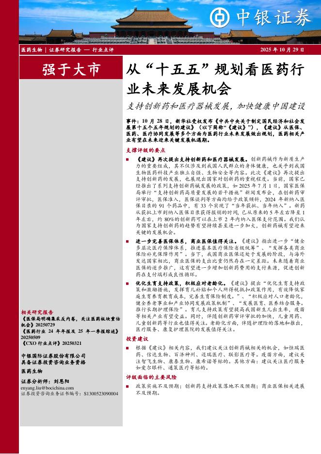 中银证券:从“十五五”规划看医药行业未来发展机会:支持创新药和医疗器械发展,加快健康中国建设.pdf