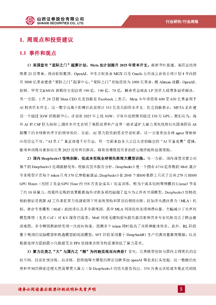 山西证券:通信周跟踪:Stargate和DeepSeek,大模型创新和工程优化的双向奔赴.pdf