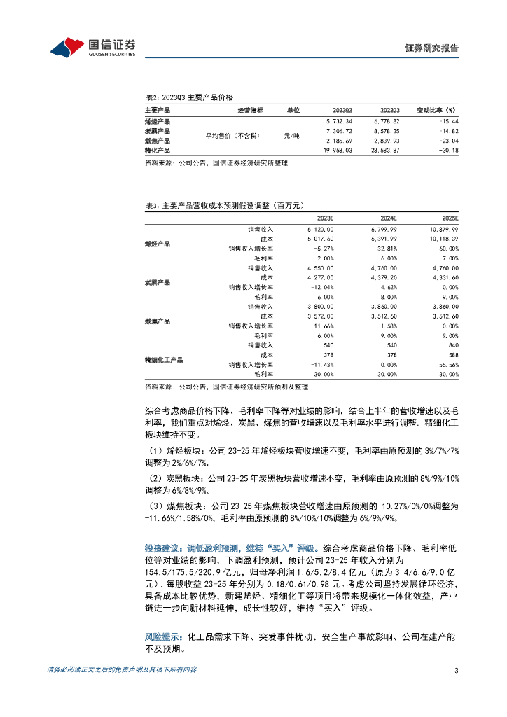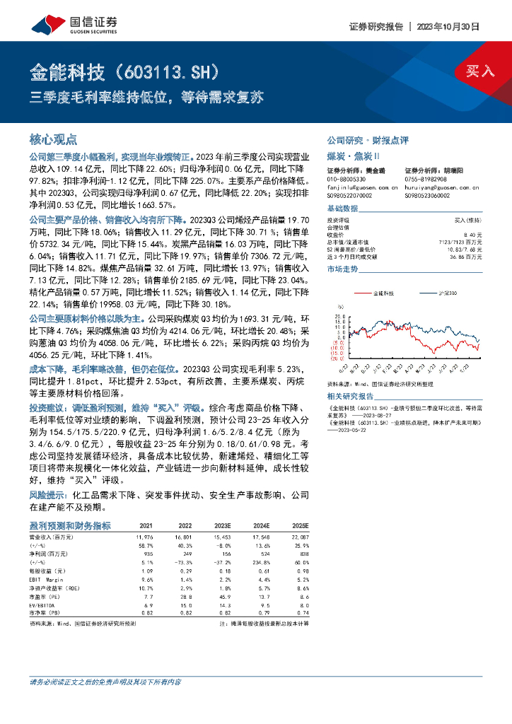 国信证券:金能科技(603113)-三季度毛利率维持低位,等待需求复苏.pdf