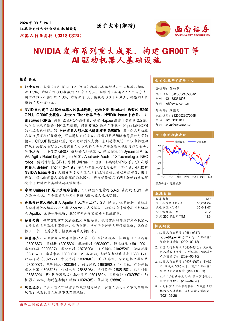 西南证券:机器人行业周报:NVIDIA发布系列重大成果,构建GR00T等AI驱动机器人基础设施.pdf