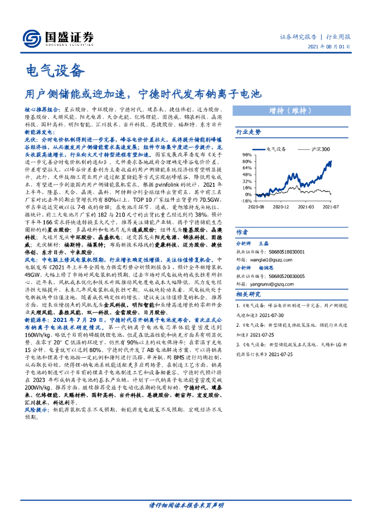 国盛证券:电气设备行业周报:用户侧储能或迎加速,宁德时代发布钠离子电池.pdf