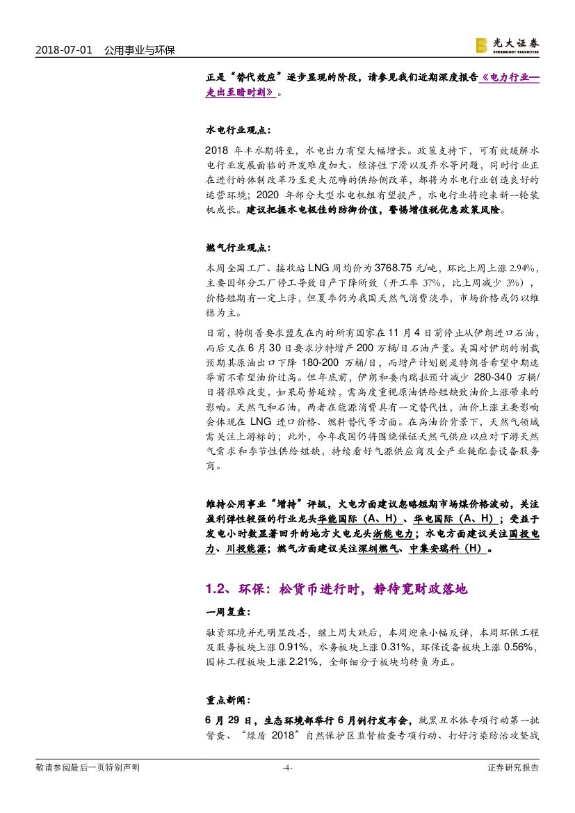 光大证券:公用事业与环保行业周报:关注高油价下天然气领域,环保静待“宽财政”.pdf