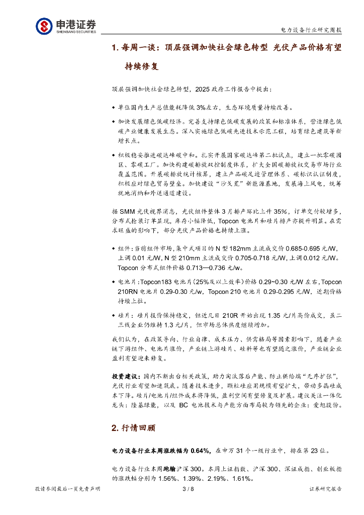 申港证券:电力设备行业研究周报:顶层强调加快社会绿色转型,光伏产品价格有望持续修复.pdf