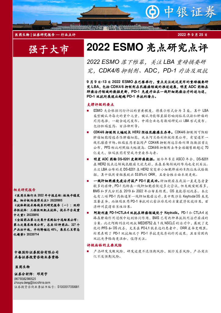 中银证券:医药生物2022 ESMO亮点研究点评:2022 ESMO落下帷幕,关注LBA重磅摘要研究,CDK4/6抑制剂、ADC,PD-1疗法及双抗.pdf