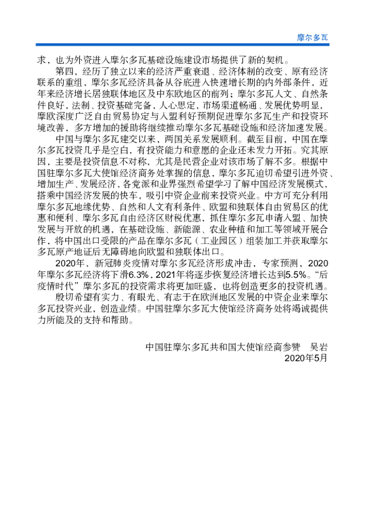 商务部:对外投资合作国别(地区)指南:摩尔多瓦(2020年版).pdf
